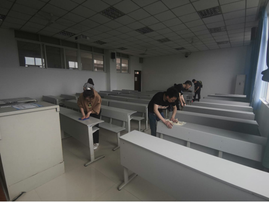 随后大家按照预先的安排有序进入教学楼,各小组携带工具有条不紊的清扫教室、整理杂乱的桌椅并将桌椅、黑板进行擦洗。