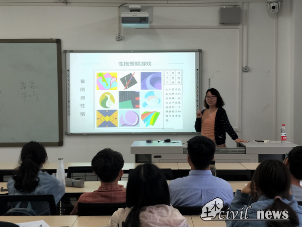 随后刘萍老师通过将性格分为四个纬度的组合,让大家参与了几道测试题,同学们逐个发言,表达了自己的想法与情感,刘萍老师在听完同学的发言后,向同学们表达了“性格无对错”“每种性格都很独特”的观点。随后,刘萍老师向大家认真讲述了如何看待性格测评结果,让同学们知道性格测试的优点,并且鼓励同学们根据测试结果对自己的性格扬长避短。