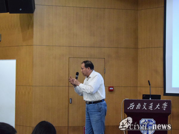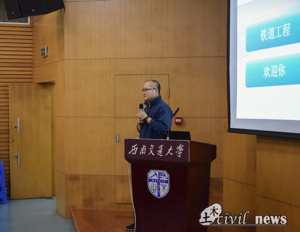 第三个为同学们讲解的是来自桥梁方向的赵人达教授,他从桥梁方向的发展简史、学科平台、学科简况、科研方向和基础工作等七个方面的情况进行讲解。他提到,桥梁方向不仅拥有包括了茅以升桥梁研究所、秦顺全院士工作室、抗震工程技术四川省重点实验室、长江学者岗位等雄厚的学科及实验平台,更是教师队伍人数最多的一个系,同时也是全校年轻教师最多的系,是一个充满了活力的系。不仅如此,近五年国家级的科研项目都取得了重大成就。最后他说,桥梁开放、公共、美观的社会特征以及丰富的人文内涵吸引了许多优秀的青年学子,桥梁学科将热忱欢迎。
