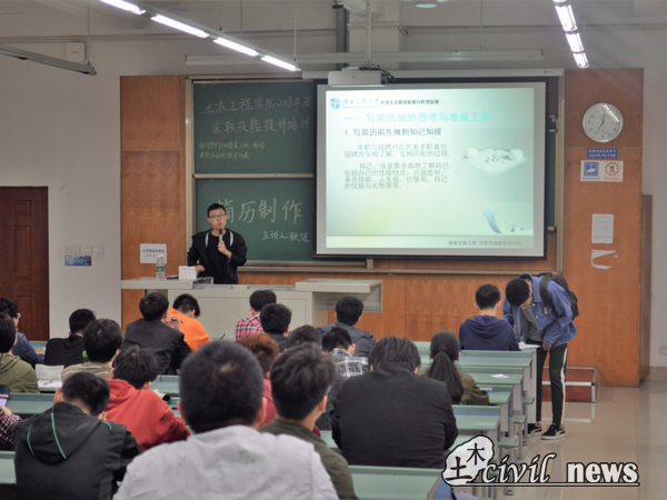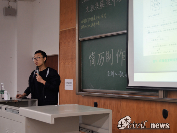 开始阶段,张进老师为同学们讲解了如何制作一份合格的简历。内容主要包括:写简历前的思考与准备工作、简历的构成要素及类型、简历制作的规范和技巧。张进老师强调:写简历前先做到知己知彼,求职与招聘对应的是求职者与招聘方互相了解、互相匹配的过程;对于即将踏人社会、毫无工作经验的应届生同学来说,了解自己并正确评估自己、合理规划职业发展方向是非常重要的。