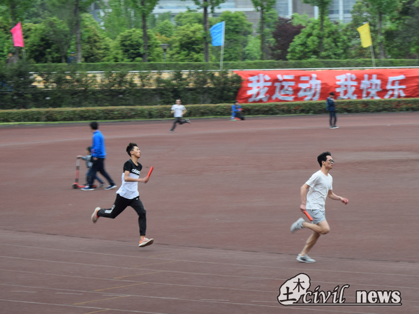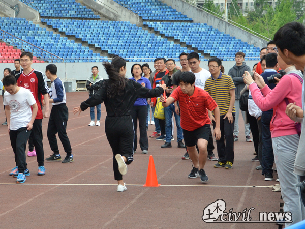 在运动场的另一边,教工组的比赛也在如火如荼的进行着。在教工10人60米穿梭接力赛中,土木学院的老师们赛出自信、赛出风采,用亮眼的表现为赛场增添了光彩。在教工组跳长绳比赛中,老师们默契配合,将拼搏奋进的土木精神发挥的淋漓尽致。