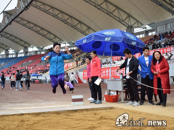 下午首先进行的是趣味运动会的“勇往直前”项目、女子跳远和仰卧起坐项目的比赛。在“勇往直前”项目中只见土木的参赛同学灵活的带动足球绕过障碍物,节奏紧凑,配合默契,展示出了土木学子的青春活力,最终取得第三名的好成绩。参加女子跳远和仰卧起坐比赛的女选手也是不甘示弱。在女子跳远项目中,赵文玉同学与武桢寓同学分别取得的第五名与第八名的好成绩,此外,练玉梅与武桢寓同学分别夺得女子仰卧起坐项目的第四名和第六名。武桢寓同学最终以332分的优异成绩取得了女子体质4项全能的第四名。她们挥洒汗水燃烧青春,用拼搏和热情点燃赛场,赢得了观众的热烈掌声,也为自己和土木学院赢得了荣耀。