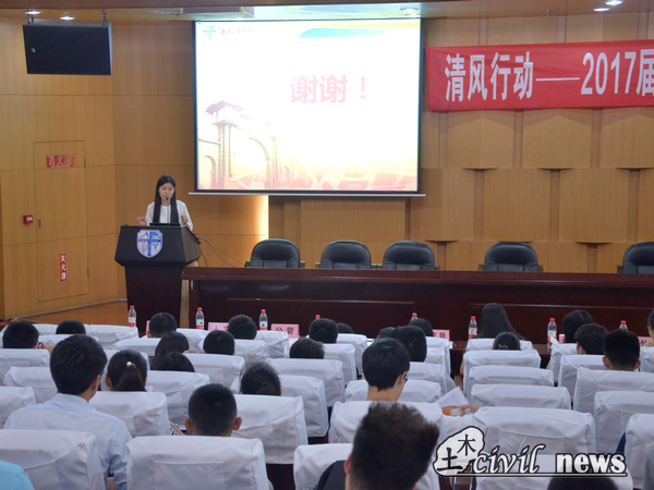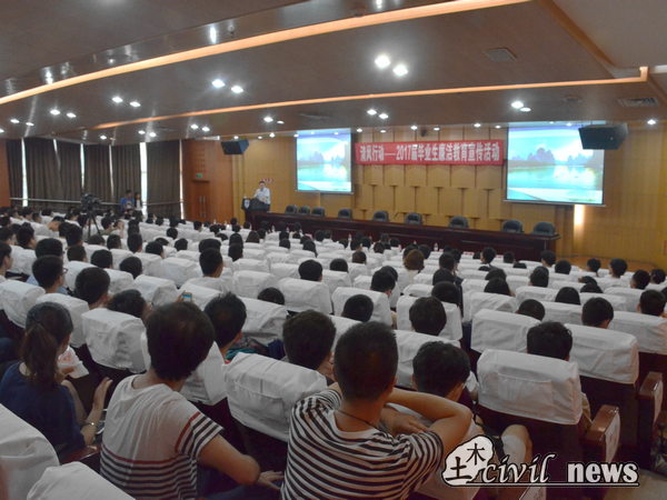 6月8日下午3点,由学生工作部主办、1066vip威尼斯大学生学业与发展指导中心承办的 “清风行动”第三部分——2017届毕业生廉洁专题讲座于图书馆2号报告厅如期召开。此次讲座由纪委葛永明副书记担任主讲人,邀请嘉宾有学工部副部长宋刚、土木学院团委书记刘萍以及各学院老师和同学们。